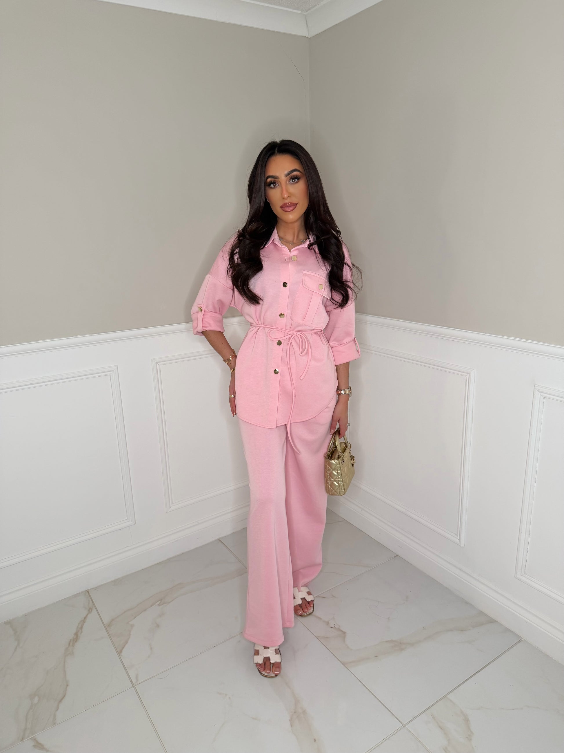 Gold button tie up co ord set